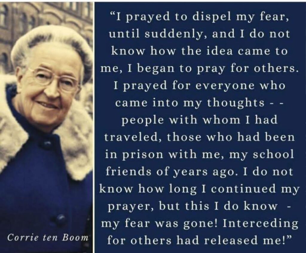 For Corrie, and for all of us, the release of bitterness as we forgive and God’s work in our hearts to even love our enemies (Matthew 5:43).